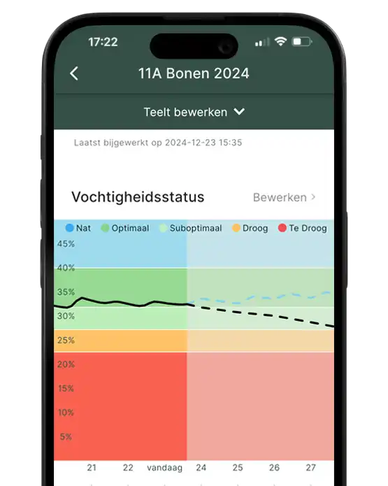La solución de Agurotech ofrece una visión clara y en tiempo real del contenido de humedad en distintas parcelas. Puedes ver todas las mediciones desde la aplicación y ya no necesitas comprobar físicamente las parcelas de forma continua, lo que ahorra tiempo y esfuerzo. Proporciona una buena visión de lo que ocurre en el suelo. Al final de la temporada, por ejemplo cuando los tulipanes están madurando, es bueno ver cuánta humedad hay todavía en el suelo y si el cultivo sigue absorbiendo humedad. Esto te permite hacer una estimación razonable de si el cultivo está demasiado húmedo o demasiado seco, de modo que puedas hacer ajustes a tiempo para evitar problemas como el fusarium, pero también para generar un crecimiento suficiente de los bulbos. De este modo, puedes asegurarte en tiempo real de que tus cultivos se mantienen vitales y sanos hasta el final de la temporada y de que los problemas en el cobertizo son un poco más manejables.