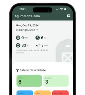 Com a Agurotech, manténs a propriedade dos teus dados e estes nunca se perdem. Podes encontrar o teu histórico de medições e conselhos no histórico da aplicação. Além disso, as medições em tempo real são complementadas por previsões, permitindo-te planear melhor.